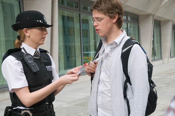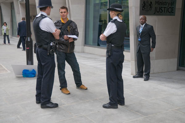 ![]() Both police and the security men took an interest in the leaflet being handed out |