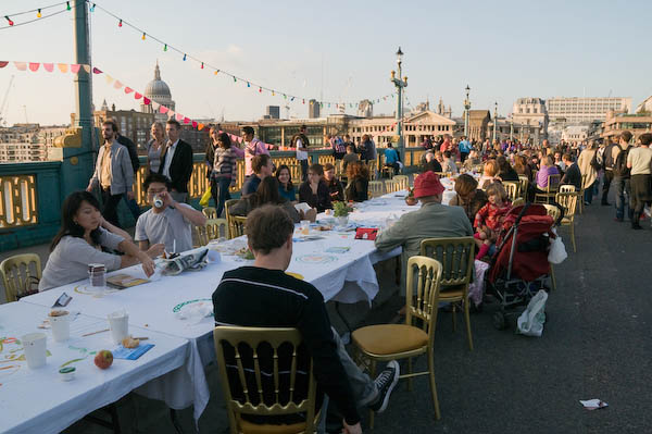The feast was over on Southwark Bridge, but there were still a few eating - and rather more drinking