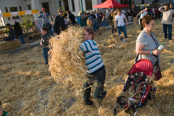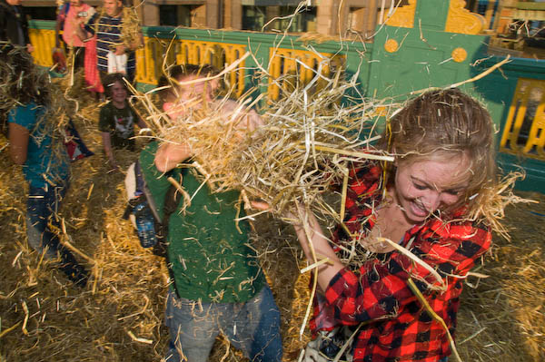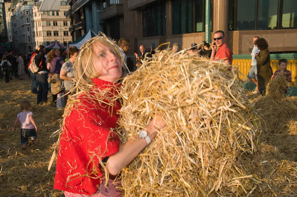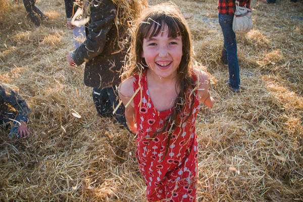 This young lady is heading for me with a large load of straw and a wicked gleam