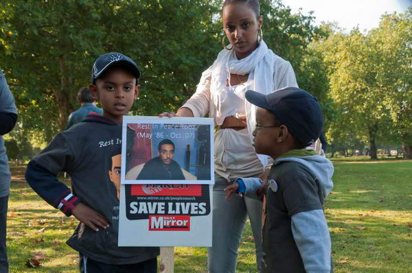 ![]() Many of those marching were family and friends of those who have died from stabbing or shootings on the streets |