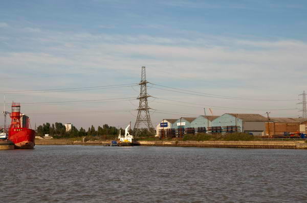 ![]() Lower Lea Crossing and buildings on River Thames at Leamouth |