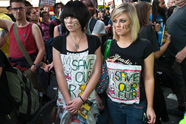 No Fur says the writing on these protesters faces