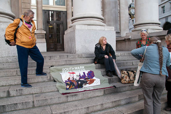 Southwark Pensioners hold a protest on the steps of the Royal Exchange