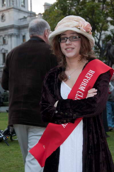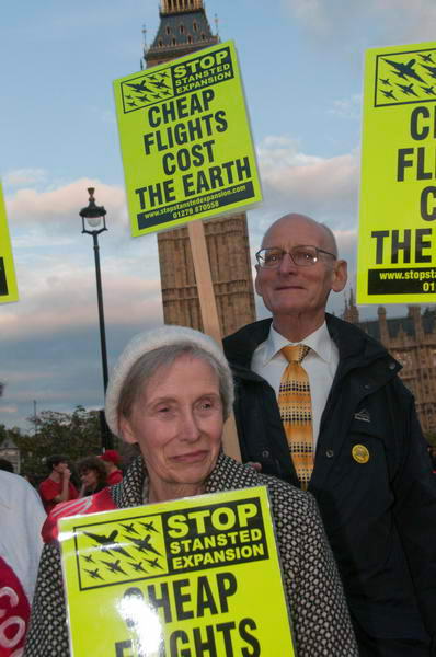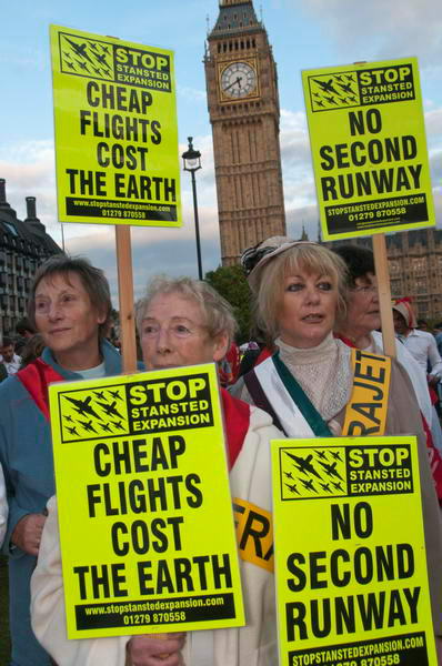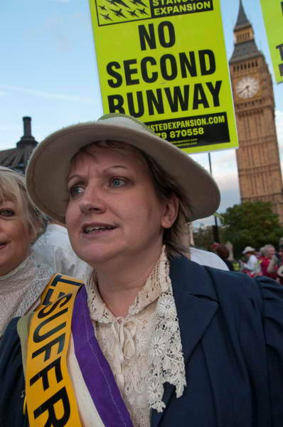 ![]() The campaigners against a second runway at Stansted wore 'Suffrajets' sashes |