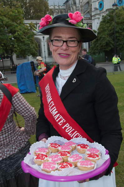 ![]() Some men also dressed the part Right: The buns say 'Deeds Not Words' and 'Climate Bill Now' and were rather sweet |