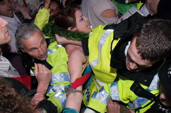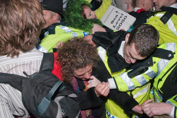 It was almost impossible for protesters to get out, and there seemed little point in some of the violent attempts by police to remove them when they were trapped by the press of bodies - and often being pushed in different directions by several officers.