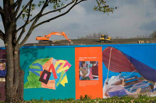 ![]() Terra-forming continues on the Olympic site behind the blue fence |