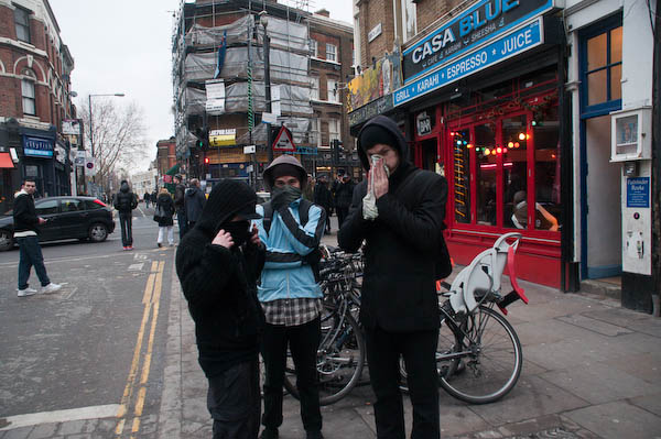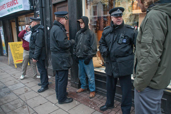 Other people got stopped and searched. Last week some anti-fur protesters had appraently caused trouble in the area.