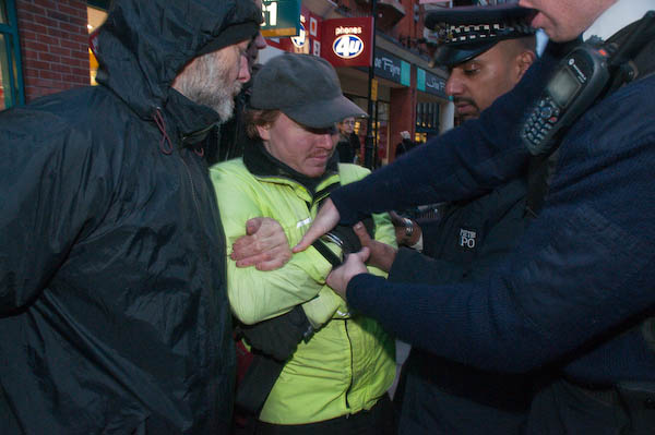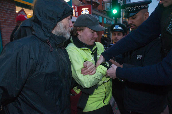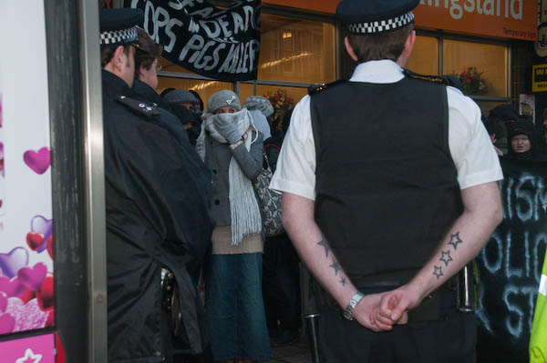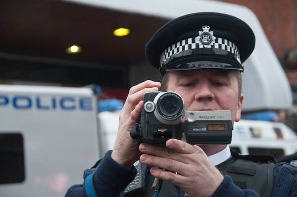 ![]() One of the police moves slightly, giving me a view into the kettle |
