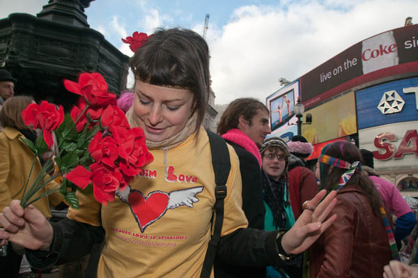 This was the sixth annual Valentine Party at Piccadilly Circus, around the statue of Eros, organised by Venus to celebrate "to celebrate the Greatest thing on Earth and the Greatest thing we have inside…Yes, Love!!!" and it was the largest yet, filling the area around with people.