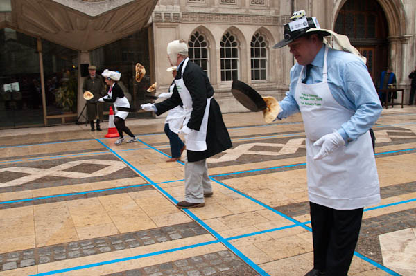 We stopped off at Stratford Place, opposite Bond Street Station to toss some fried bankers brains in the frying pans and then there was a pancake race, holding up a Rolls Royce that was prevented by the police from driving through while we were there.