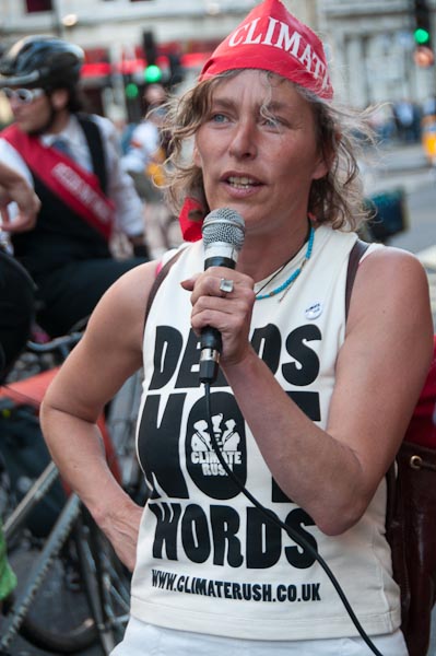 Stppping for more information about Climate Criminals putside the RBS in Lower Regent St