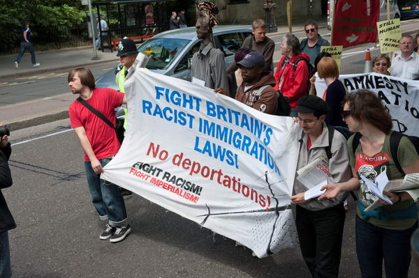 Fight Britain's Racist Immigration Laws! The banner from FIght Racism! Fight Imperialism!