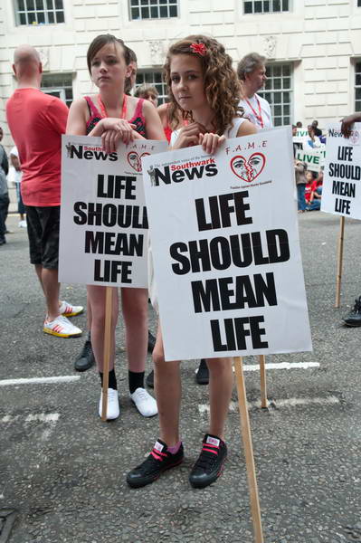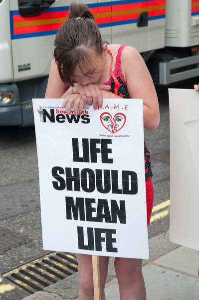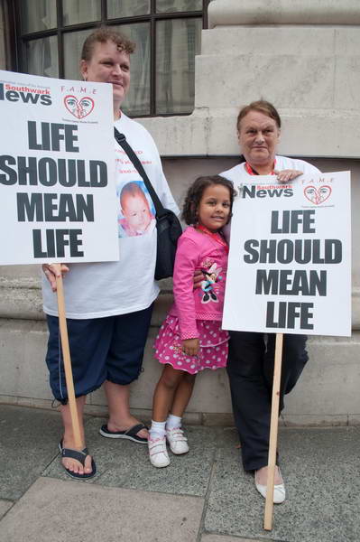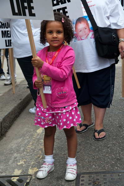 The two women at right have t-shirts with a picture of murdered 18 month old Aysha Kuddissi