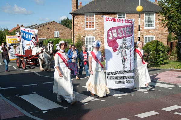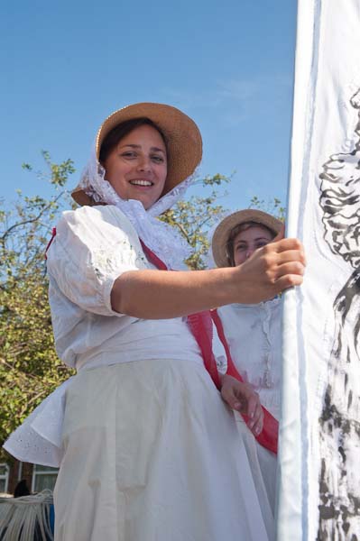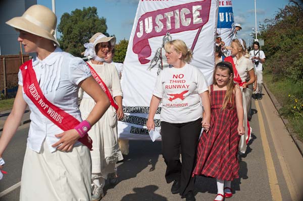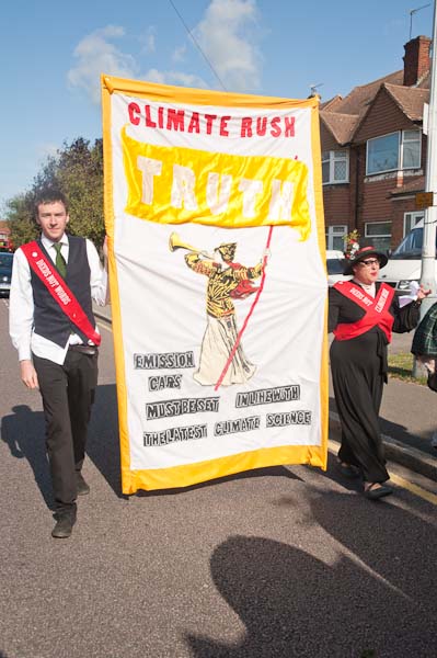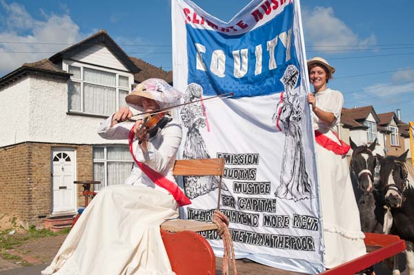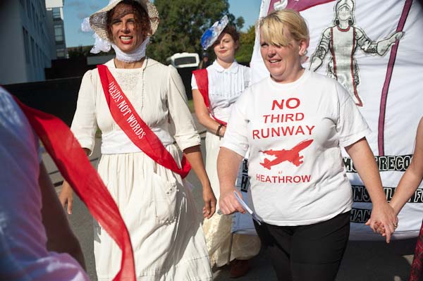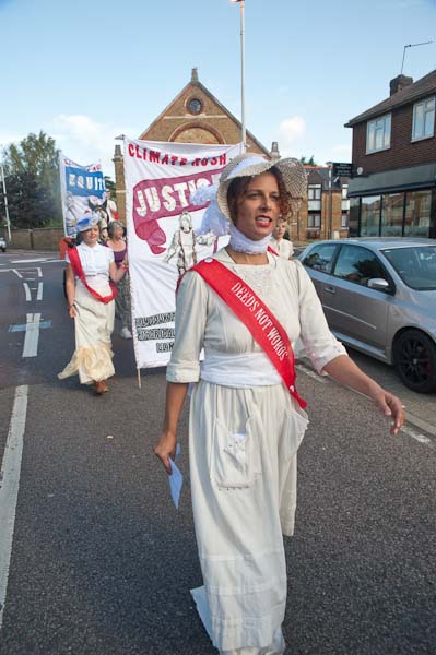 Tamsin Omond looks as if she is about to lose her "Deeds Not Words" sash