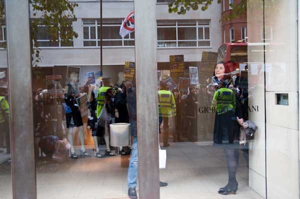 Finally I was happy with this image of these two women and the posters - 'Here's the rest of your fur coat'
