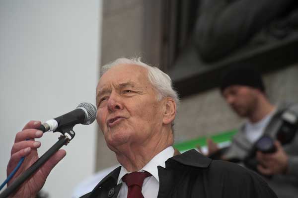 While the speeches were being made there was a disturbance at the north end of the square and I ran to see what was happening. Police were escorting four men away and a couple of hundred people were following them, alleging they had been shouting insults at the speakers