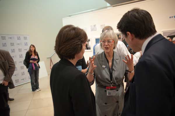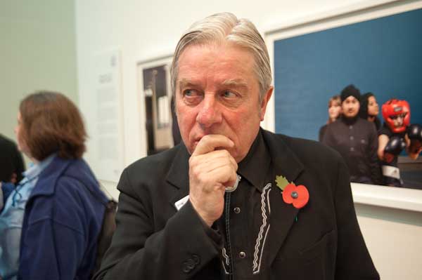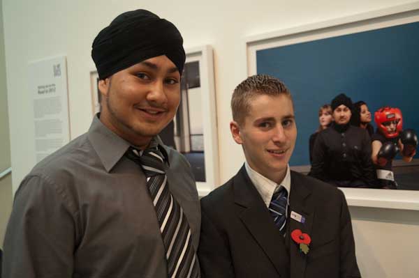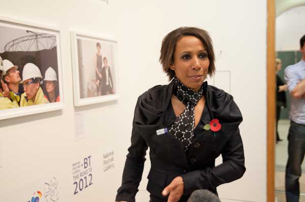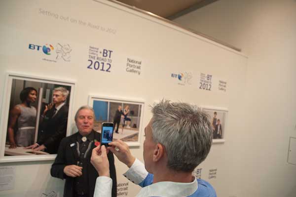 Jonathan Edwards photographs Brian Griffin in front of his picture with and Denise Lewis