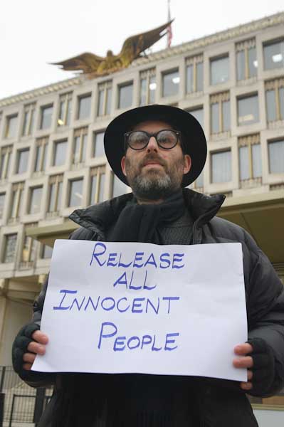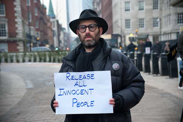 ![]() 'Release All Innocent People'. David Mery, wrongfully arrested in 2005 for being "calm, almost too calm" on the tube |