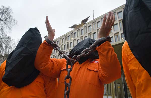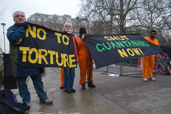 Guantanamo Bay - 8 Shameful YearsUS Embassy, Grosvenor Square, London. Monday 11 Jan 2010