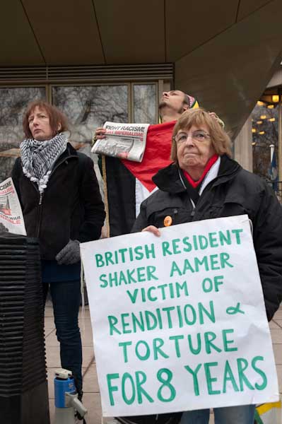 ![]() A placard reminds us British Resident Shaker Aamer has been a victim of rendition & torture for 8 years |