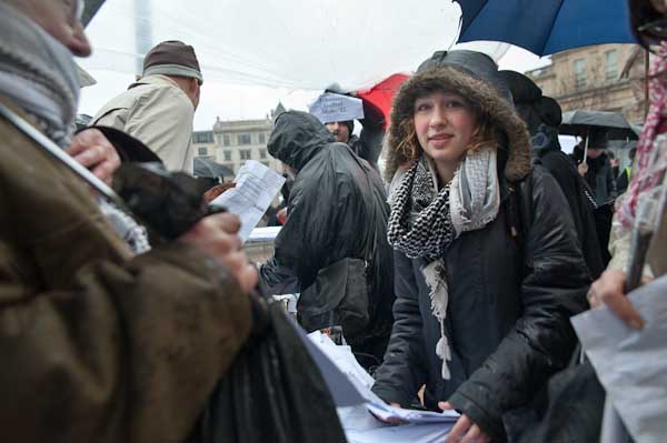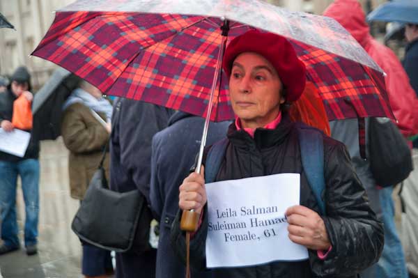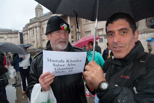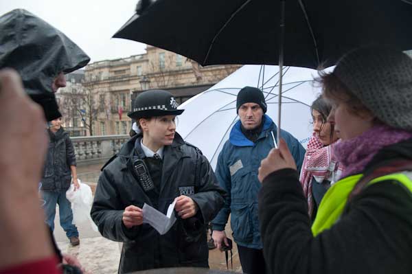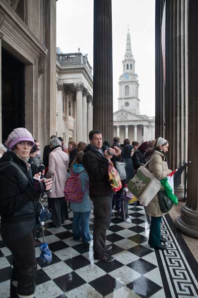 It was pouring in rafalgar Square as the demonstration assembled, and I waited for a while with others on the National Gallery steps