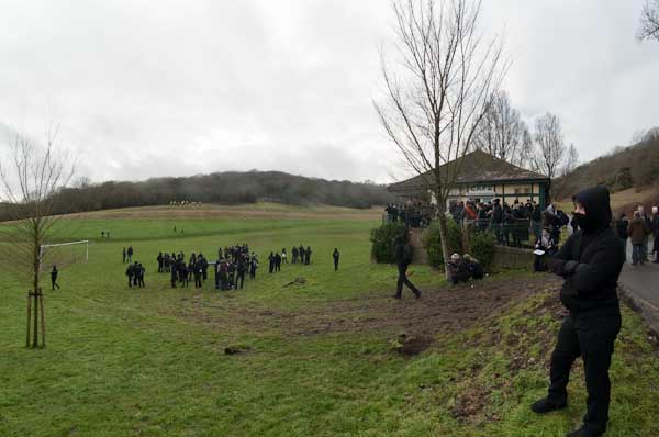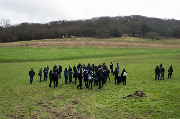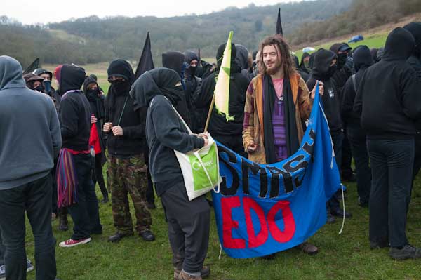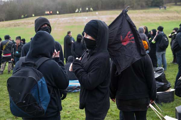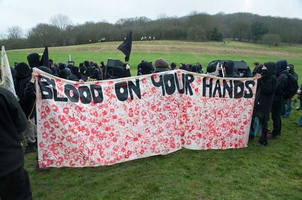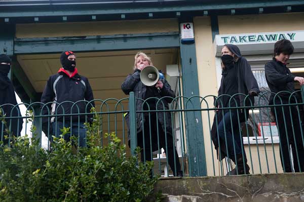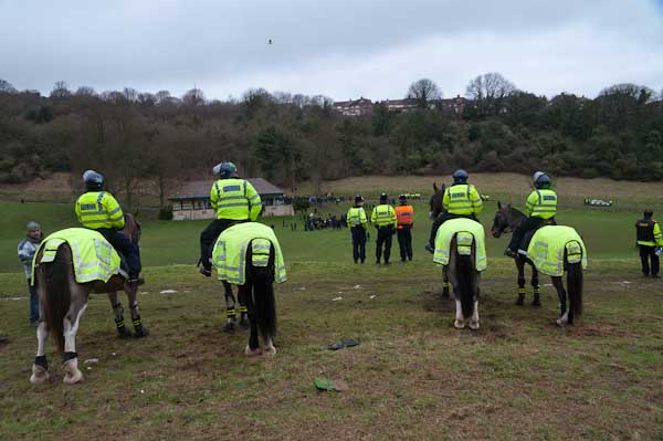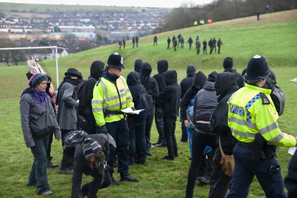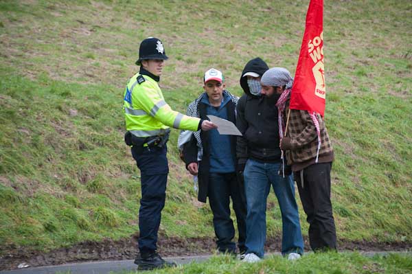 Police attempt to hand out notices explaing their powers under section 14 of the Public Order Act. Few were inerested