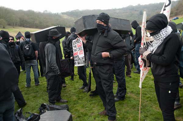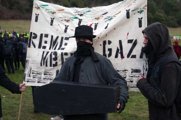 Coffins to remember the 1417 Palestinians killed - some by Brighton-produced bombs