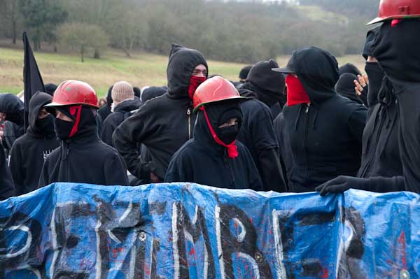 Protesters were asked to wear black and to cover their faces with masks