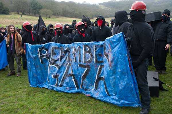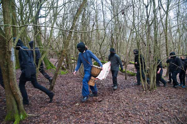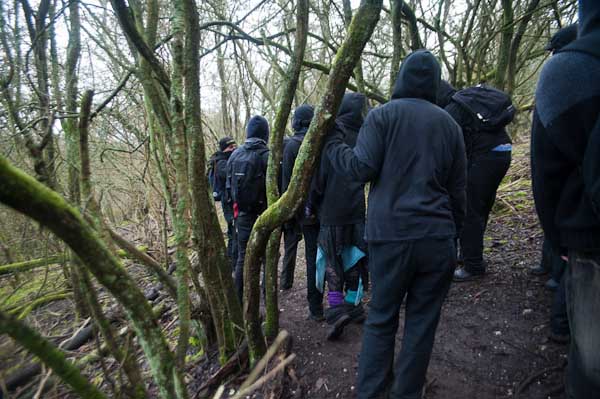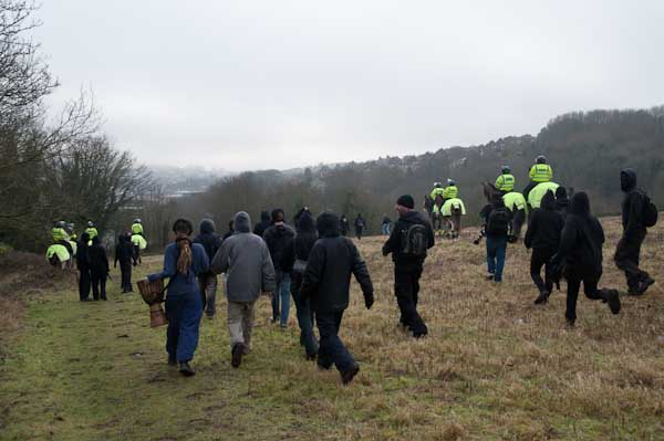 and most of the marchers rushed up the hillside to make their way towards EDO through the woods