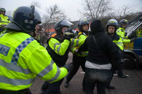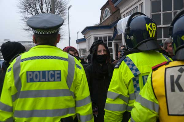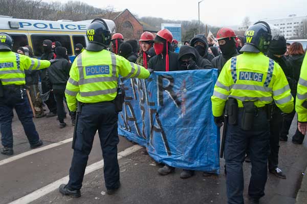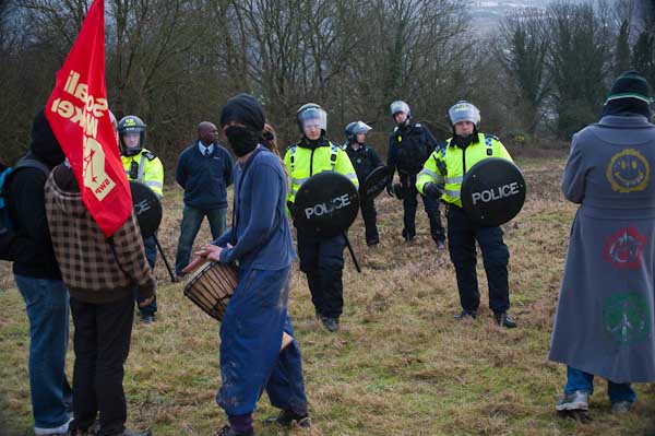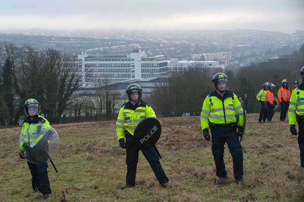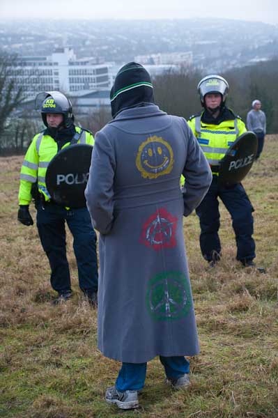 The protesters walked back through the woods and down to join those who had stayed at Home Farm Road for a march back into Brighton