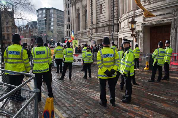 The main protest was on Storey's Gate to the side of the conrefence center and in front of Methodist Central Hall