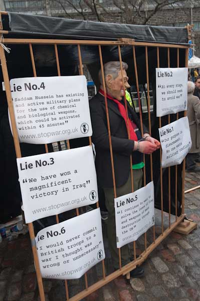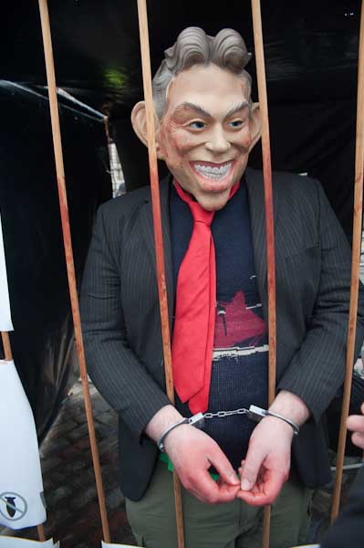 Tony Blair was handcuffed and in a cage surrounded by some of his iies