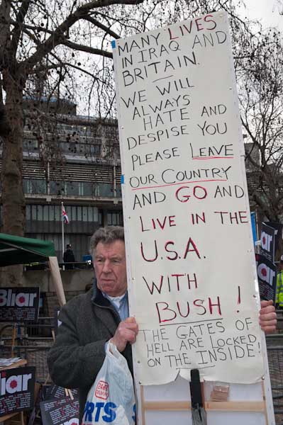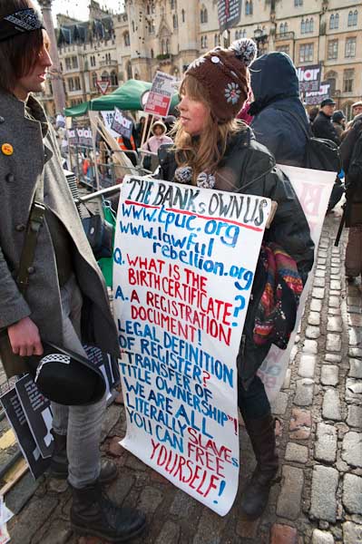 'Go and Live with Bush' and 'The Banks Own Us' - two of the longer placards on display
