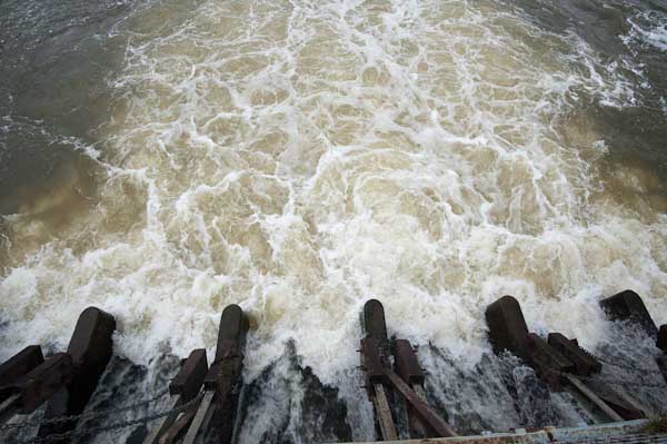 Empty paddling pool by the river