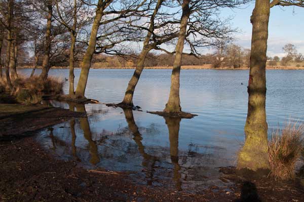 The Pen Ponds were flooding out over the edges and we were paddling along the path