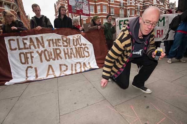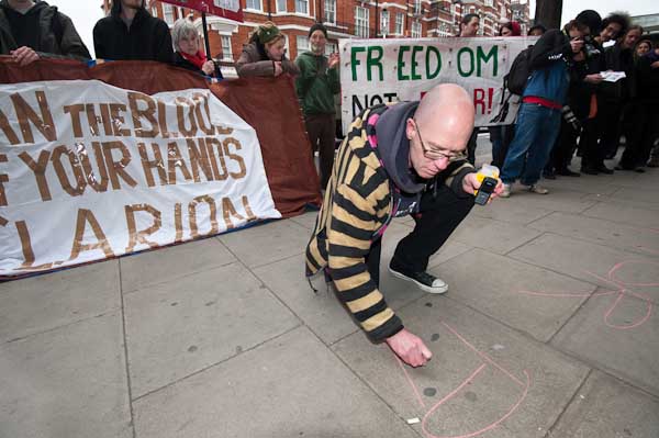The protesters were leaving the pavement clear but it seemed a good place for a slogan