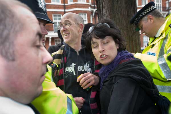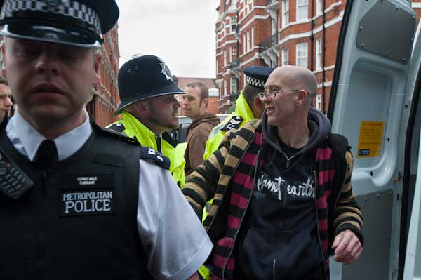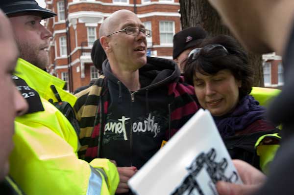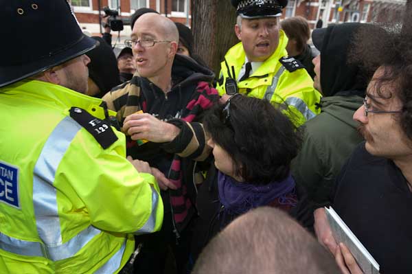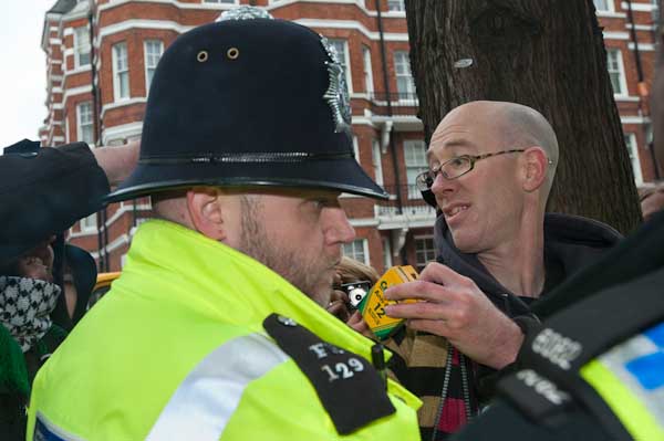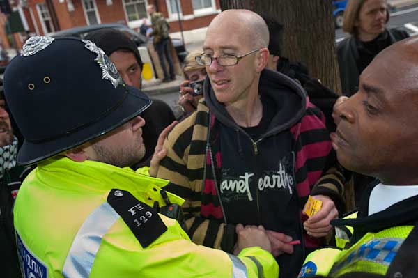 Protesters tell him that the man has not committed any offence