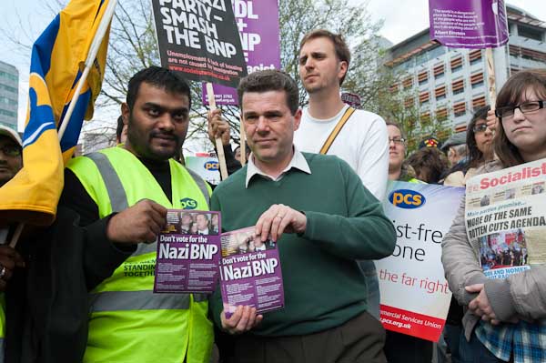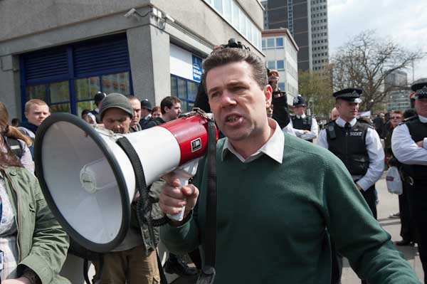 PCS General Secretary Mark Serwotka came to talk to the counter-demonstrators