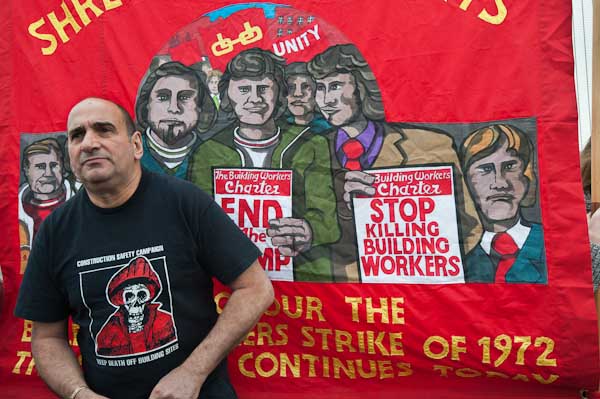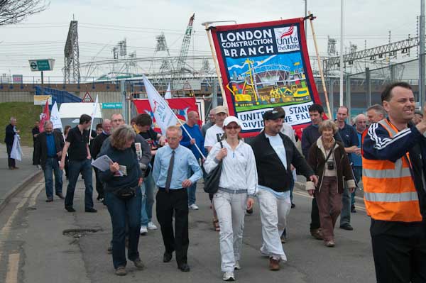 The Olympic stadium and Unite London Construction banner with picture of stadium
