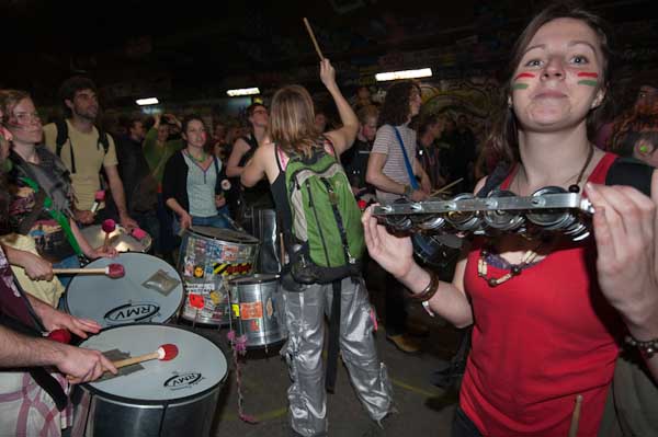 pictures Street band 'Rhythms of Resistance' kicked off the May Day 'Rave Against The Machine' street rave in Leake St, under Waterloo Station with some powerful samba drumming.