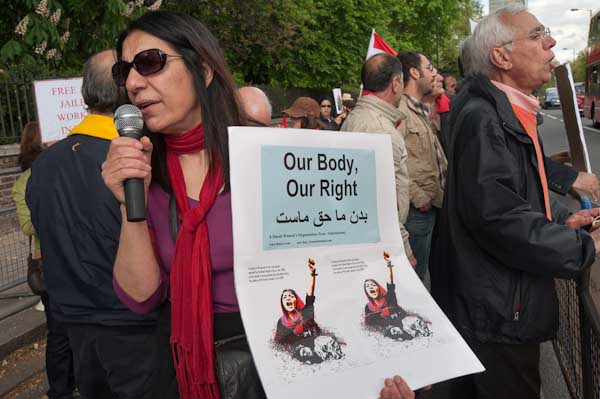 Saturday's demonstration was in protest at the executions of five political activists - four men and a woman - on Sunday 9 May; Farzad Kamangar, Ali Heydarian, Farhad Vakili, Mehdi Eslamian and Shirin Alam-Houli. Protests have already taken place in Iran and at Iranian embassies in various cities around the world against these killings.
