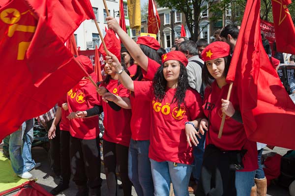 ![]() The Turkish communist parties brighten up the march ![]() ![]() ![]() Many flags and banners for the MLKP and the youth organisation KGO ![]() ![]() |