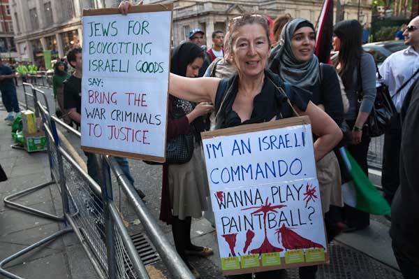 Among the counter demonstrators were Jewish supporters of the boycott of Israeli goods