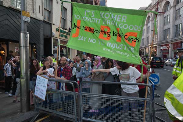 The J-BIG (Jews for Boycotting Israeli Goods) banner