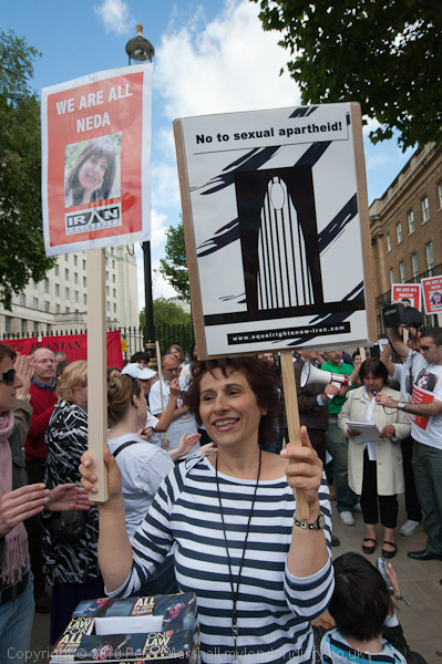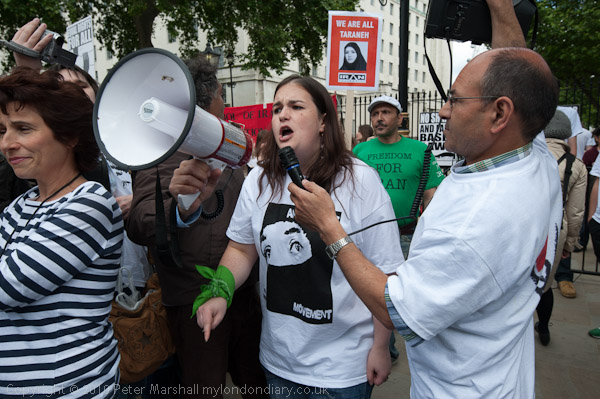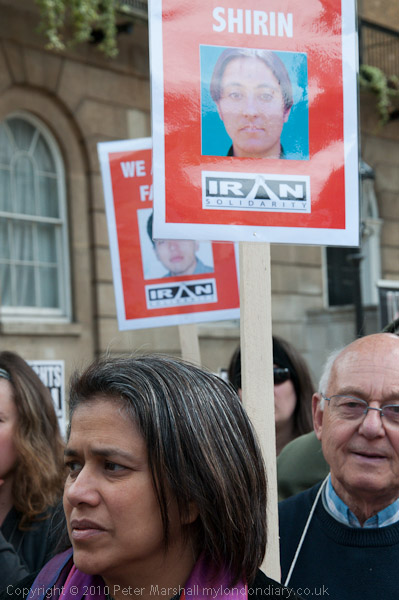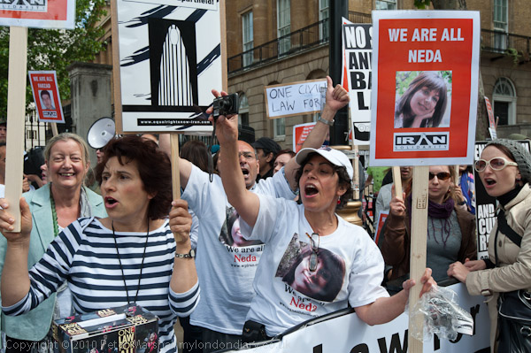 Banners and t-shirts remembered Neda Agha-Soltan, killed at a demonstration in Iran exactly a year before