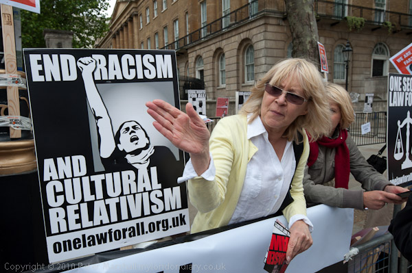 contrast to the Muslims Against the Crusades demonstrating against them a few yards down the road.