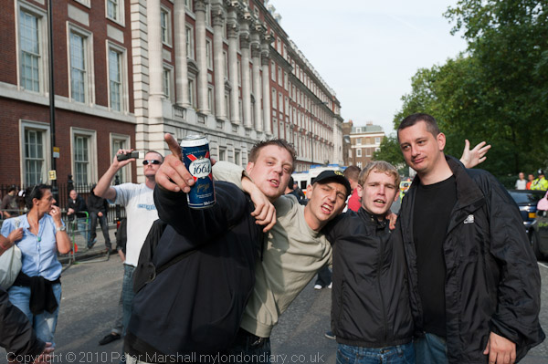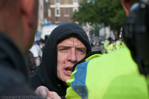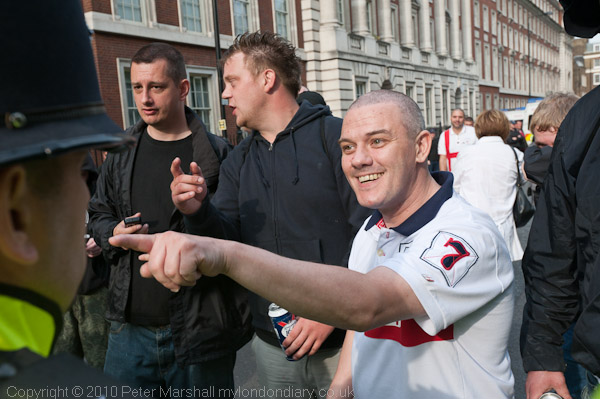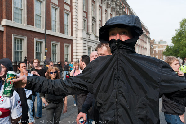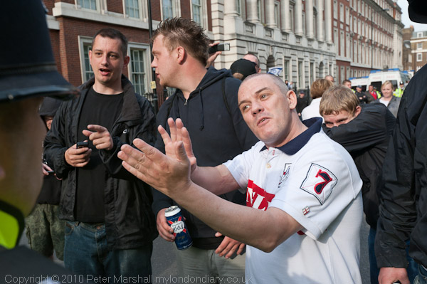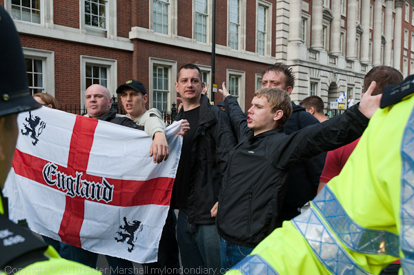 In Grosvenor Square EDL members came to shout at and threaten the press while waiting for the march