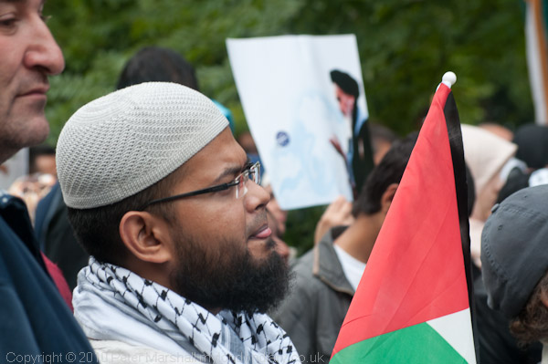 Al-Quds Day marchers assemble for a rally in front of the US Embassy, London