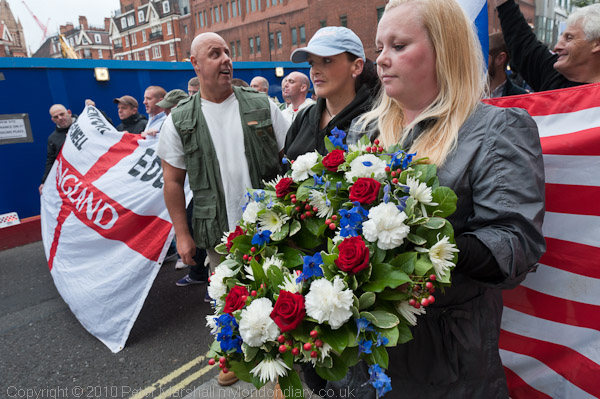 A wreath from the EDL at the head of the march as it left the Hog on the Pound